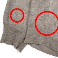 状態説明 | 全体的に使用感が感じられます。 首元リブ、左右袖リブにダメージが見受けられます。 首元リブに薄くシミ汚れが見受けられます。 前身頃、中央プリントの近くに薄くシミ汚れが見受けられます。 前身頃、中央のプリントがかすれております。 前身頃、左下にシミ汚れが見受けられます。 前身頃、右下、右袖口にシミ汚れが見受けられます。 後ろ身頃、左右肩辺りにシミ汚れが見受けられます。 右袖口に穴が見受けられます。 後ろ身頃、左脇辺りに若干の汚れが見受けられます。 その他、目立ったダメージ、汚れは見受けられません。 |