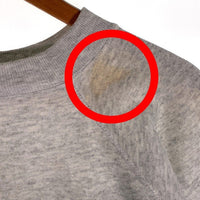 状態説明 | 使用感は感じられませんが、前身頃首元、左肩から手首、後身頃首元に黄色いシミ汚れが見受けられます。 |