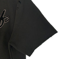 HUF ハフ POP FLY DAMAGE CREW ダメージ加工 半袖 クルーネックスウェットトレーナー ブラック 切りっぱなし Size L 福生店