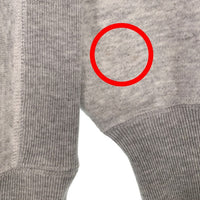 状態説明 | 全体的に使用感が感じられます。 前身頃、中央に黄色いシミが見受けられます。 右袖リブ辺りに黄色いシミが見受けられます。 後身頃、腰回りのリブ中央辺りに黄色いシミ汚れが見受けられます。 |