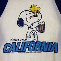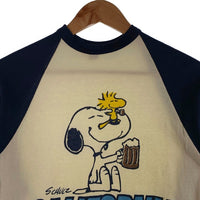 70's ARTEX SCHULZ CALIFORNIA スヌーピープリント ラグランスリーブカットソー ホワイト ネイビー Size M