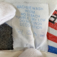 状態説明 | 全体的に使用感が感じられます。前後のプリントが若干薄いで。後身頃、首元にリペア跡が見受けられます。品質表示タグが薄れて所々確認できません。 |