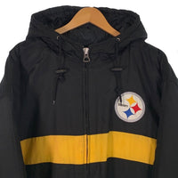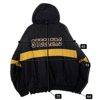 90's LOGO7 NFL Steelers スティーラーズ ナイロン ジップアップジャケット パーカー 中綿 ブラック Size XL 福生店