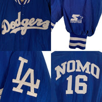 90's STARTER より ロサンゼルス・ドジャース NOMO 野茂英雄 ナイロン スタジャン 中綿 ブルー USA製 Size L になります。