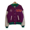 90's STUSSY ステューシー I.S.T. ワッペン 刺繡 ウール袖レザースタジャン パープル グリーン ホワイト オールド Size L 福生店