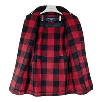 COMME des GARCONS HOMME コムデギャルソンオム HN-C014 AD2014 ショールカラー 袖レザー バッファローチェック ロング スタジャン ブラック レッド sizeXSが入荷いたしました。