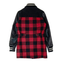 COMME des GARCONS HOMME コムデギャルソンオム HN-C014 AD2014 ショールカラー 袖レザー バッファローチェック ロング スタジャン ブラック レッド sizeXS 瑞穂店