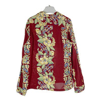 SUN SURF サンサーフ M22502 ウクレレ ハイビスカス 長袖アロハシャツ 臙脂 sizeM 瑞穂店
