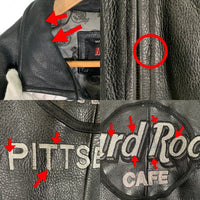 Hard Rock Cafe ハードロックカフェ PITTSBURGH ジップアップ レザージャケット ブラック 刺繡 Size XL