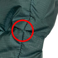 状態説明 全体的に使用感が感じられます。左腕の中央辺りに縫製のほつれが見受けらます。全体的に(主に左腕)ダウンが出てきています。首元内側が白っぽく色褪せが見受けられます。前身頃、前立てのビリビリが2箇所と取れかけています。所々に黒いシミ汚れが見受けられます。その他、目立ったダメージ、汚れは見受けられません。