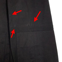 状態説明 | 全体的に使用感が感じられます。 所々に若干の白っぽい色褪せが見受けれます。 前身頃、左太もも辺りに白っぽい跡が見受けられます。 左右共に裾の裏側に生地がダマ?になっております。 前身頃、フロントボタンに塗装の剥がれが見受けられます。 |