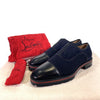 Christian Louboutin HUBERTUS FLAT VEAU レザー スウェード ウール ドレスシューズ キャップトゥ ブラック ネイビー Size 41 1/2 (26.5cm)