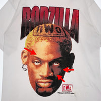 US古着 00's Dennis Rodman デニスロッドマン RODZILLA n.w.o. Tee プリントTシャツ PRO CLUB (補修あり) になります。