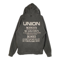 UNION ユニオン プリント プルオーバースウェットパーカー ECOCYCLE チャコール 加工 Size XL 福生店