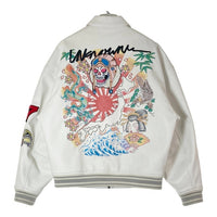 UNKNOWN LONDON アンノウンロンドン × EDHARDY エドハーディー MultiPatchesLeatherJacket フェイクレザージャケット 刺繍 プリント ホワイト sizeM 瑞穂店